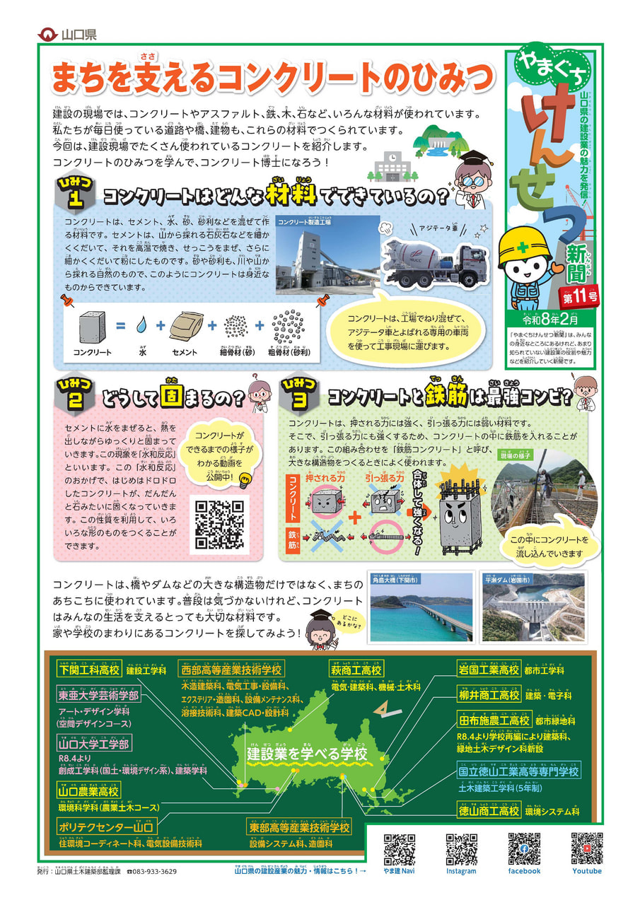 ※山口県土木建築部発行により、小中学生に建設産業への理解と関心を深めてもらうため、毎年度制作され、県内の小中学校等に配布されています。
